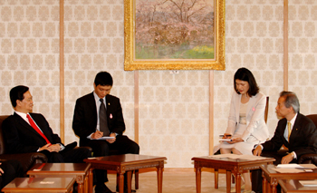 |  | | Thủ tướng Nguyễn Tấn Dũng và Chủ tịch Hạ viện Nhật Bản Kono Yohei - Ảnh: Chinhphu.vn | Trong bầu không khí hữu nghị và hiểu biết lẫn nhau, Thủ tướng Nguyễn Tấn Dũng và Chủ tịch Thượng viện, Chủ tịch Hạ viện Nhật Bản bày tỏ vui mừng trước những tiến triển vượt bậc trong quan hệ hữu nghị hợp tác giữa hai nước trên các lĩnh vực chính trị, kinh tế, văn hóa…. Hai bên nhất trí cho rằng chuyến thăm Việt Nam của Hoàng Thái tử Nhật Bản tháng 2 và chuyến thăm Nhật Bản của Tổng Bí thư Nông Đức Mạnh tháng 4 năm nay có ý nghĩa đặc biệt quan trọng góp phần đưa quan hệ hai nước lên tầm cao mới "đối tác chiến lược vì hòa bình và phồn vinh ở Châu Á". Thủ tướng Nguyễn Tấn Dũng khẳng định, Chính phủ và nhân dân Việt Nam luôn ưu tiên và coi trọng phát triển quan hệ hữu nghị hợp tác với Nhật Bản. Thủ tướng cảm ơn Quốc hội, Chính phủ và nhân dân Nhật Bản đã hỗ trợ và giúp đỡ rất hiệu quả đối với công cuộc phát triển kinh tế xã hội ở Việt Nam; trong đó có việc chia sẻ kinh nghiệm trên lĩnh vực hoạt động lập pháp. Thủ tướng đánh giá cao việc Quốc hội và Chính phủ Nhật Bản tiếp tục ưu tiên viện trợ phát triển ODA cho Việt Nam trong bối cảnh kinh tế Nhật Bản gặp nhiều khó khăn do ảnh hưởng của suy thoái kinh tế toàn cầu; khẳng định Việt Nam sẽ hợp tác chặt chẽ với Nhật Bản nhằm thực hiện có hiệu quả các khoản ODA đó. Thủ tướng Nguyễn Tấn Dũng đề nghị, Quốc hội Nhật Bản sớm phê chuẩn Hiệp định đối tác kinh tế Việt – Nhật để hiệp định sớm có hiệu lực và đi vào cuộc sống nhằm tạo môi trường thuận lợi, công bằng và bình đẳng trong quan hệ kinh tế giữa hai nước. Hai Chủ tịch khẳng định sẽ phát huy vai trò của mình thúc đẩy Quốc hội Nhật Bản sớm hoàn tất các thủ tục phê chuẩn Hiệp định này. |  | | Thủ tướng Nguyễn Tấn Dũng hội kiến Chủ tịch Thượng viện Nhật Bản Eda Satsuki - Ảnh: Chinhphu.vn | Tại các buổi tiếp, Chủ tịch Thượng viện và Hạ viện Nhật Bản khẳng định Quốc hội Nhật Bản luôn ủng hộ Việt Nam, mong muốn quan hệ giữa hai nước tiếp tục phát triển hơn nữa, Nhật Bản đánh giá cao vai trò của Việt Nam trong khu vực và coi Việt Nam là một trong những đối tác tin cậy, quan trọng hàng đầu của Nhật Bản ở Châu Á. Thủ tướng Nguyễn Tấn Dũng và Chủ tịch Hạ viện Kono Yohei , Chủ tịch Thượng viện Eda Satsuki bày tỏ vui mừng về sự giao lưu, tiếp xúc thường xuyên giữa Quốc hội hai nước, đồng thời đánh giá cao các hoạt động của Nhóm Nghị sĩ hữu nghị Việt - Nhật và Liên minh Nghị sĩ hữu nghị Nhật – Việt đã góp phần tích cực vào việc không ngừng củng cố và phát triển quan hệ hữu nghị hợp tác giữa hai nước nói chung và hai Quốc hội nói riêng. Thủ tướng Nguyễn Tấn Dũng đã chuyển lời mời của Chủ tịch Quốc hội Nguyễn Phú Trọng mời Chủ tịch Hạ viện và Chủ tịch Thượng viện sang thăm Việt Nam./. Việt Đông – Nhật Bắc |