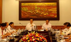 (Website Chính phủ) – Chiều 21/8, tại Hà Nội, Thủ tướng Nguyễn Tấn Dũng đã làm việc với lãnh đạo Bộ Nông nghiệp và Phát triển nông thôn (NN và PTNT) về việc triển khai thực hiện hợp nhất Bộ Thủy sản vào Bộ NN và PTNT và xây dựng chức năng, nhiệm vụ, quyền hạn và cơ cấu tổ chức mới của Bộ này. Tham dự buổi làm việc có Phó Thủ tướng Hoàng Trung Hải.