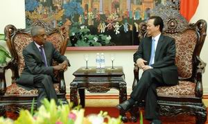 (Website Chính phủ) - Chiều 21/8, tại trụ sở Chính phủ, Thủ tướng Nguyễn Tấn Dũng đã tiếp Đại sứ Hàn Quốc Kim-Eui-ki đến chào từ biệt, kết thúc nhiệm kỳ công tác tại Việt Nam.
