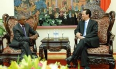 (Website Chính phủ) – Trong buổi tiếp Đoàn đại biểu Hạ nghị viện Nhật Bản do ông Nikai Toshihiro, Chủ tịch Ủy ban Chính sách Quốc hội Đảng Dân chủ Tự do dẫn đầu đang ở thăm và làm việc tại Việt Nam, chiều 20/8, tại Trụ sở Chính phủ, Thủ tướng Nguyễn Tấn Dũng nhấn mạnh hai bên Việt - Nhật đang làm hết sức mình hoàn tất công tác chuẩn bị để sớm triển khai 3 dự án hợp tác lớn.