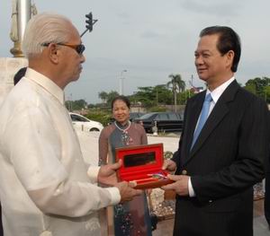 (Website Chính phủ)- Ngày 10/8, ngày thứ hai trong chuyến thăm chính thức Cộng hòa Philippines, Thủ tướng Nguyễn Tấn Dũng, Phu nhân và Đoàn cấp cao Chính phủ Việt Nam đã đến đặt vòng hoa tại Tượng đài Anh hùng Dân tộc Jose Rizal; tiếp Chủ tịch Thượng viện Manuel Bamba Villar Jr.; Chủ tịch Hạ viện Jose de Venecia; nói chuyện với sinh viên Trường Đại học Tổng hợp quốc gia Philippines.