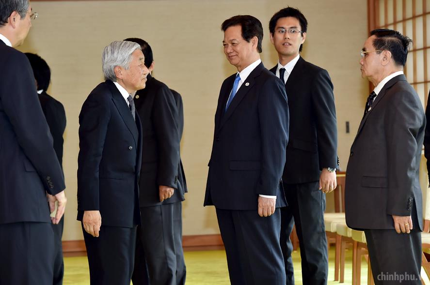 Nhà Vua Nhật Bản Akihito đón Thủ tướng Nguyễn Tấn Dũng. Ảnh: VGP/Nhật Bắc