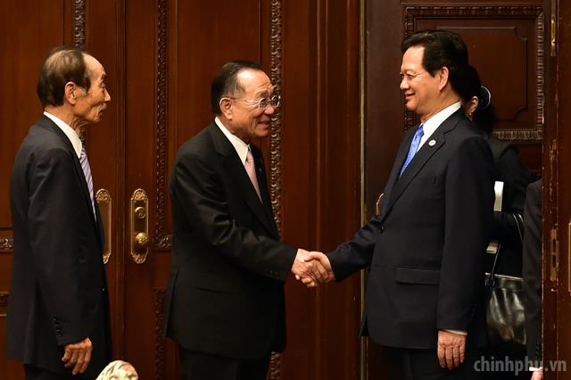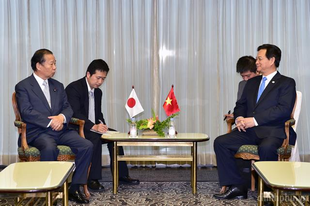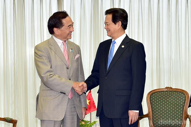 Thủ tướng Nguyễn Tấn Dũng tiếp Chủ tịch Liên minh nghị sĩ hữu nghị Nhật-Việt Toshihiro Nikai. Ảnh: VGP/Nhật Bắc