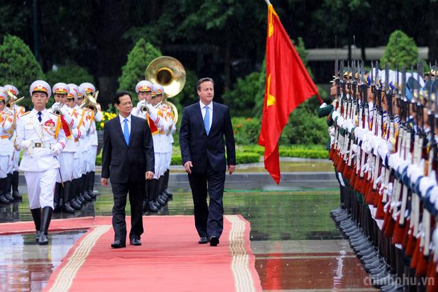 Thủ tướng Nguyễn Tấn Dũng cùng Thủ tướng Vương quốc Anh David Cameron duyệt Đội Danh dự. Ảnh: VGP/Nhật Bắc.