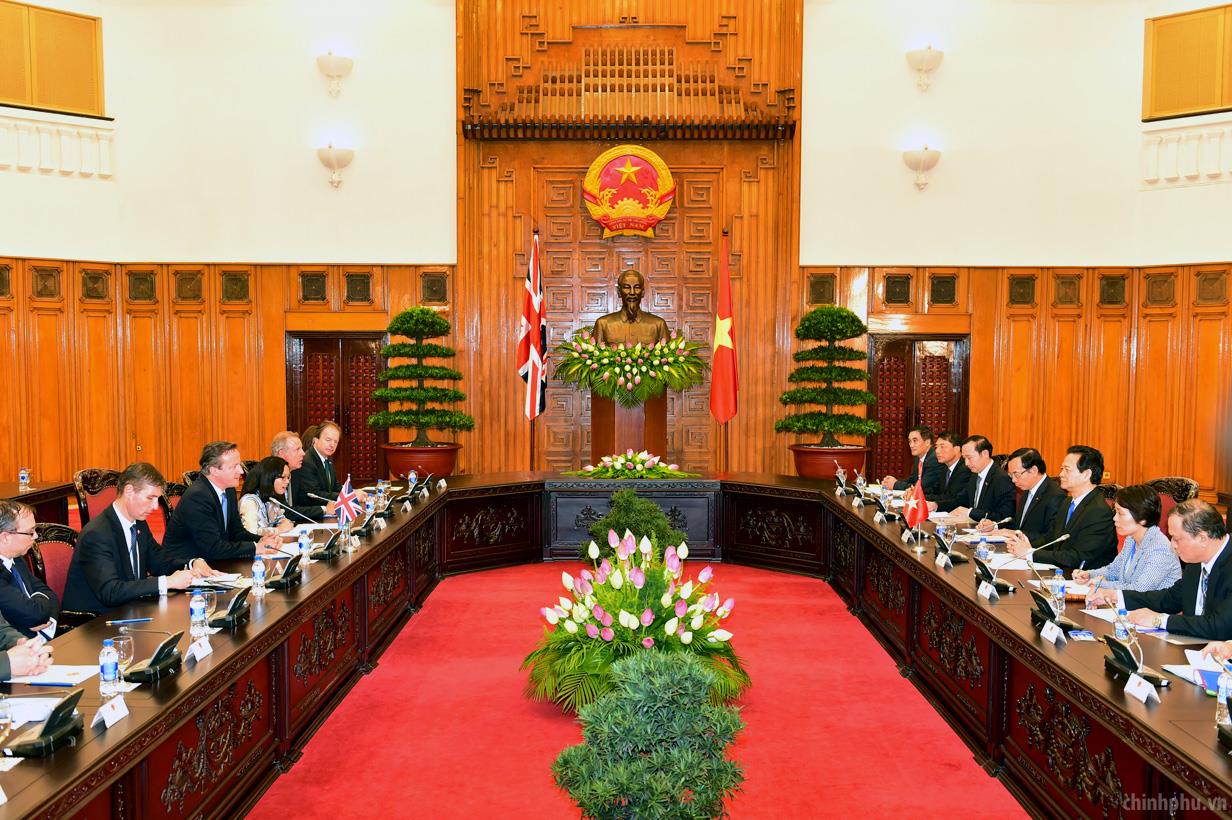 Thủ tướng David Cameron: Hai nước chúng ta có rất nhiều cơ hội để tăng cường quan hệ, nhất là kinh tế, thương mại, đầu tư, giáo dục, giao lưu nhân dân. Ảnh: VGP/Nhật Bắc
