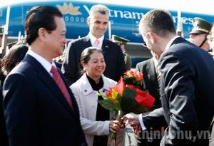 Thủ tướng Chính phủ Nguyễn Tấn Dũng, Phu nhân vẫy chào những người bạn Séc và kiều bào Việt Nam đang học tập, làm ăn sinh sống tại Cộng hòa Séc ra sân bay đón Đoàn