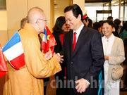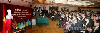 Những người bạn Pháp và đồng bào Việt Nam đang công tác, học tập, làm ăn sinh sống tại Cộng hòa Pháp nồng nhiệt chào đón Thủ tướng Nguyễn Tấn Dũng, Phu nhân và Đoàn cấp cao Việt Nam