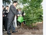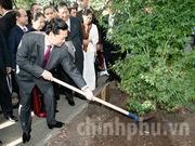 Thủ tướng Nguyễn Tấn Dũng trồng cây lưu niệm trong Công viên Montreau - nơi đặt Tượng Bác Hồ và có "Không gian Hồ Chí Minh" lưu giữ các hiện vật liên quan tới cuộc đời hoạt động của Nguyễn Ái Quốc tại Pháp.