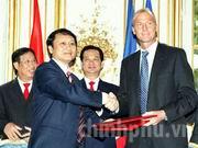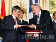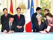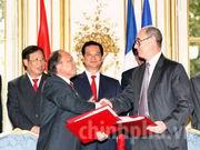 Thủ tướng Nguyễn Tấn Dũng và Thủ tướng Francois Fillon chứng kiến lễ ký kết nhiều văn kiện hợp tác kinh tế giá trị nhiều tỷ USD giữa các doanh nghiệp hai nước.