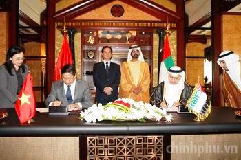 Thủ tướng Nguyễn Tấn Dũng chứng kiến lễ ký thỏa thuận hợp giữa Phòng Thương mại và Công nghiệp Việt Nam với Phòng Thương mại và Công nghiệp Abu Dhabi