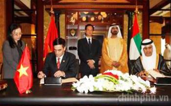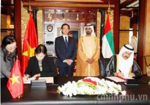 Thủ tướng Nguyễn Tấn Dũng và Phó Tổng thống, Thủ tướng UAE Mohammed Bin Rashid Al Maktoum chứng kiến Lễ ký thỏa thuận Hiệp định thành lập Ủy ban Liên Chính phủ về hợp tác giữa Chính phủ nước CHXHCN Việt Nam và Chính phủ UAE