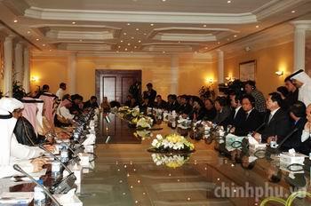 Thủ tướng Nguyễn Tấn Dũng và Phó Thủ tướng, Bộ trưởng Ngoại giao Phạm Gia Khiêm trao đổi với lãnh đạo Phòng Thương mại và Công nghiệp Abu Dahbi