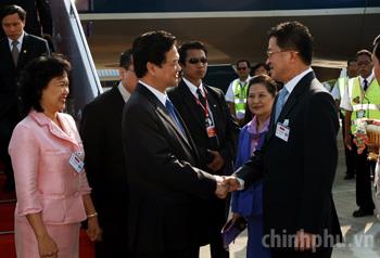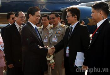 Đón Thủ tướng Nguyễn Tấn Dũng và Đoàn cấp cao Chính phủ Việt Nam tại sân bay Hua Hin, tỉnh Prachuap Khiri Khan có Bộ trưởng Bộ Y tế Thái Lan Witthaya Keawparadai
