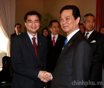 Thủ tướng Nguyễn Tấn Dũng tiếp xúc song phương với Thủ tướng Thái Lan Abhisit Vejjajiva