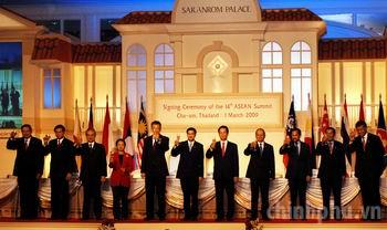 (Chinhphu.vn) - Dẫn đầu Đoàn cấp cao Việt Nam tham dự Hội nghị cấp cao ASEAN lần thứ 14 diễn ra từ ngày 28/2-1/3/2009 tại Cha Am-Hua Hin, Thái Lan, Thủ tướng Nguyễn Tấn Dũng đã liên tục có những hoạt động quan trọng cả trước và trong các phiên họp chính thức của Hội nghị, như tham dự các phiên họp kín của các lãnh đạo cấp cao ASEAN, tiếp xúc song phương với Thủ tướng Thái Lan, gặp gỡ và đối thoại với một số tổ chức chính trị, xã hội ASEAN. Dưới đây là một số hình ảnh ý nghĩa về hoạt động của Thủ tướng Nguyễn Tấn Dũng trong chuyến công tác này do phóng viên Cổng TTĐT Chính phủ tháp tùng đoàn ghi lại.