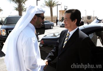 Thủ tướng Nguyễn Tấn Dũng bày tỏ vui mừng lần đầu tiên đến thăm đất nước Qatar tươi đẹp và giàu lòng mến khách, cũng như sự tiếp đón trọng thị, thân tình mà Chính phủ và nhân dân Qatar đã dành cho đoàn