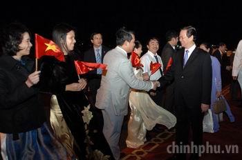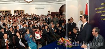 Thủ tướng Chính phủ Nguyễn Tấn Dũng và Phu nhân đến thăm, nói chuyện thân mật với đông đảo cán bộ, nhân viên Đại sứ quán và cộng đồng người Việt Nam tại Qatar