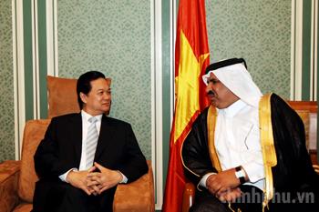 Thủ tướng Nguyễn Tấn Dũng bày tỏ vui mừng lần đầu tiên đến thăm đất nước Qatar tươi đẹp và giàu lòng mến khách, cũng như sự tiếp đón trọng thị, thân tình mà Chính phủ và nhân dân Qatar đã dành cho đoàn. Thủ tướng Nguyễn Tấn Dũng và Thủ tướng Hamad Bin Jasim Bin Jaber al Thani trao đổi sâu rộng về phương hướng và biện pháp cụ thể nhằm tăng cường hơn nữa quan hệ hợp tác song phương Việt Nam – Qatar