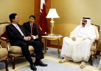 Thủ tướng Nguyễn Tấn Dũng hội kiến Quốc vương Qatar Hamad Bin Khalifa Al-Thani