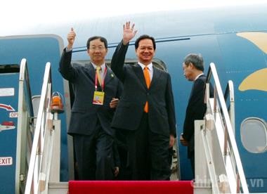 Thủ tướng Nguyễn Tấn Dũng và Đoàn Chính phủ Việt Nam đến sân bay quốc