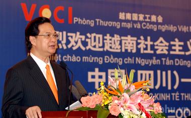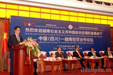 Thủ tướng Nguyễn Tấn Dũng đến dự và phát biểu tại Diễn đàn Hợp tác Kinh tế Thương mại Việt Nam – Trung Quốc