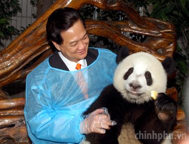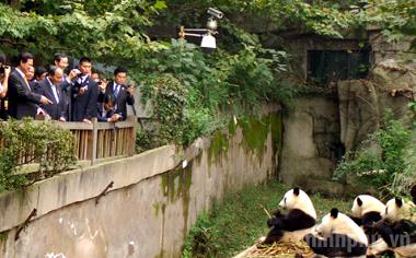 Trong ngày, Thủ tướng và Đoàn cấp cao Chính phủ Việt Nam đã đến thăm cơ sở nuôi gấu trúc, một biểu tượng của Trung Quốc..