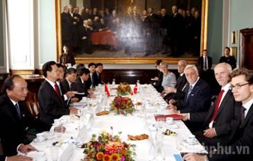 hủ tướng Nguyễn Tấn Dũng và Đoàn cấp cao Chính phủ Việt Nam có cuộc gặp gỡ Chủ tịch Quốc hội Thor Pederson. Hai bên vui mừng nhận thấy quan hệ hợp tác nhất là việc trao đổi đoàn giữa Quốc hội hai nước đang phát triển tích cực