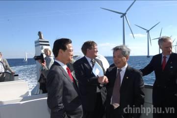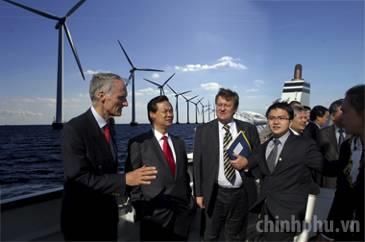 Thủ tướng Nguyễn Tấn Dũng và Đoàn cấp cao Chính phủ Việt Nam tới thăm Nhà máy điện gió ngoài biển của Đan Mạch, là một trong những nước đang dẫn đầu thế giới về công nghệ phong điện