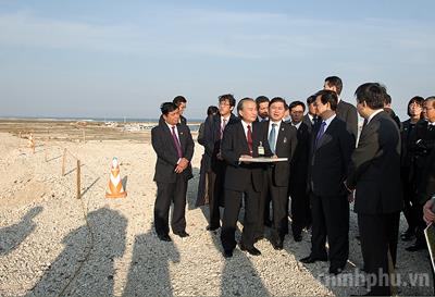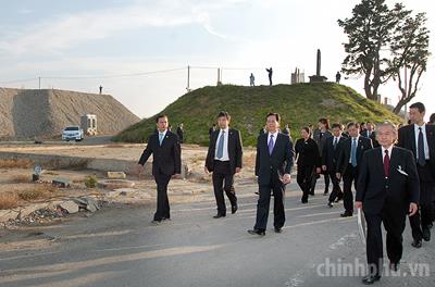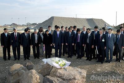 (Chinhphu.vn) - Sáng 1/11, trong khuôn khổ chuyến thăm chính thức Nhật Bản, Thủ tướng Chính phủ Nguyễn Tấn Dũng đã tới thăm khu vực bị thiệt hại và dâng hoa tưởng niệm các nạn nhân của thảm họa động đất, sóng thần tại thành phố Natori của tỉnh Miyagi.