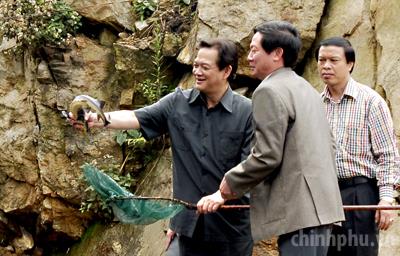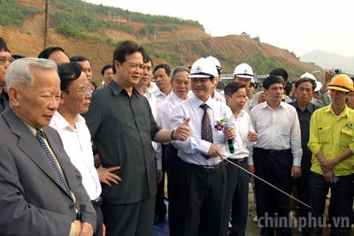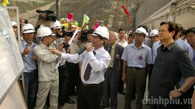 (Chinhphu.vn) - Trong các ngày 21 và 22/4 Thủ tướng Nguyễn Tấn Dũng dẫn đầu Đoàn công tác Chính phủ thăm và làm việc tại Lào Cai, Lai Châu, Sơn La. Thủ tướng cũng tới thăm công trường thi công Thủy điện Bản Chát, Huội Quảng, dự lễ mừng tổ máy số 2 Nhà máy Thủy điện Sơn La hòa lưới điện quốc gia.