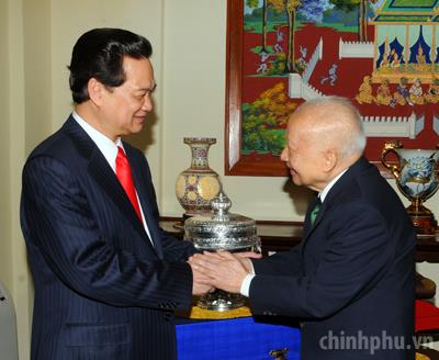 Chiều 23/4, Thủ tướng Nguyễn Tấn Dũng đã đến chào cựu Quốc vương Norodom Sihanouk. Thủ tướng đánh giá cao sự giúp đỡ, ủng hộ to lớn của cựu Quốc vương đối với công cuộc đấu tranh giành độc lập dân tộc và thống nhất đất nước trước đây cũng như trong sự nghiệp xây dựng đất nước Việt Nam ngày nay.