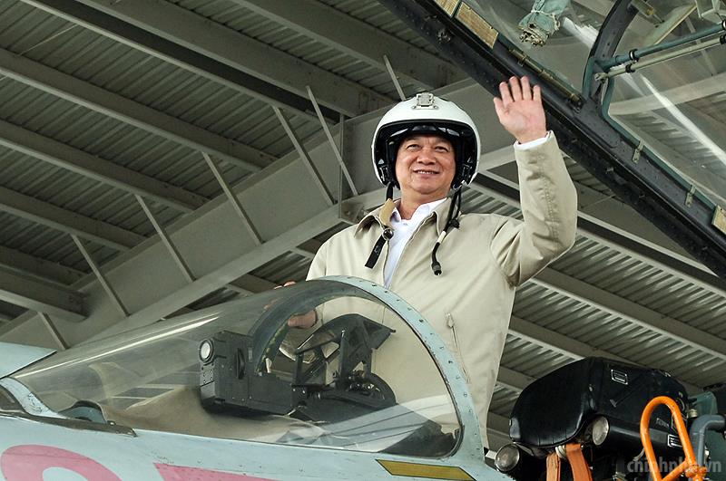 Thủ tướng Nguyễn Tấn Dũng trên một máy bay chiến đấu.