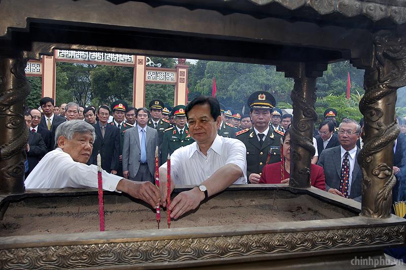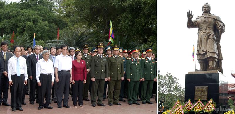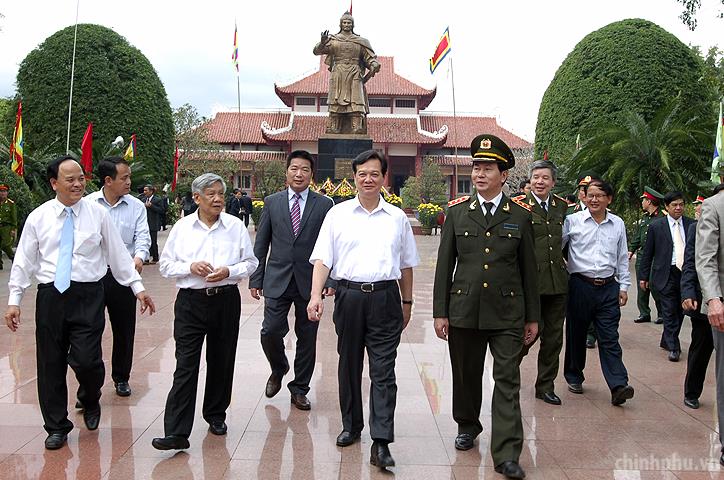 Thủ tướng Nguyễn Tấn Dũng, nguyên Tổng Bí thư Lê Khả Phiêu, lãnh đạo các Bộ, ngành dâng hương, hoa tưởng nhớ, tri ân công đức người Anh hùng áo vải Quang Trung – Nguyễn Huệ tại Bảo tàng Quang Trung, thị trấn Phú Phong, huyện Tây Sơn.