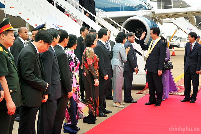 Ngày 2/4, Thủ tướng Nguyễn Tấn Dũng cùng phu nhân tới Thủ đô Phnom Penh, Campuchia.
