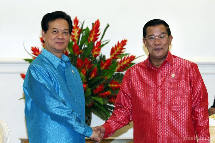 Ngay sau khi đến Thủ đô Phnom Penh, Thủ tướng Nguyễn Tấn Dũng đã có cuộc gặp gỡ song phương với Thủ tướng Chính phủ Hoàng gia Campuchia Hun Sen.