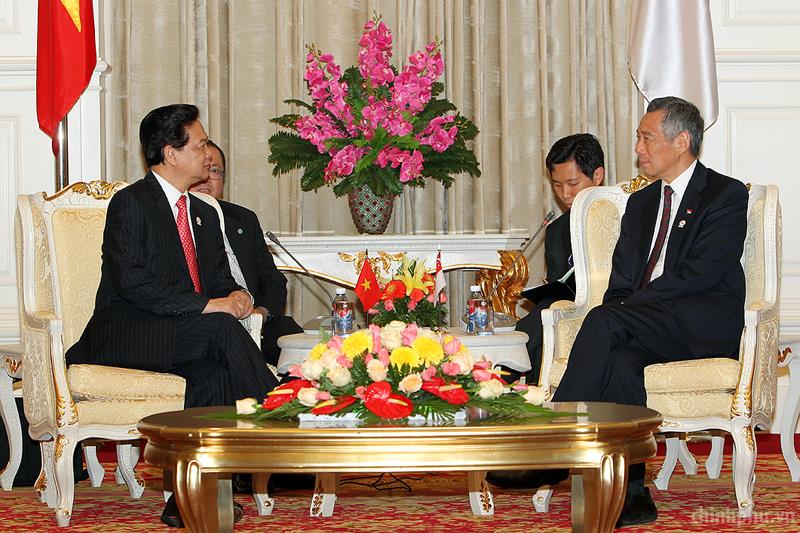 Bên lề Hội nghị Cấp cao SEAN lần thứ 20, chiều 3/4, Thủ tướng Chính phủ Nguyễn Tấn Dũng đã có cuộc gặp với Thủ tướng Singapore Lý Hiển Long.