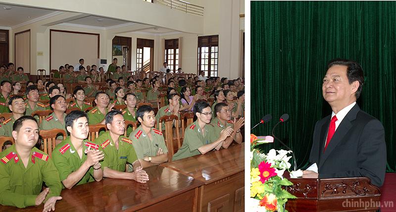 Thủ tướng Nguyễn Tấn Dũng đến thăm và nói chuyện với cán bộ, chiến sĩ Công an tỉnh Gia Lai.