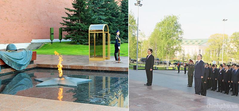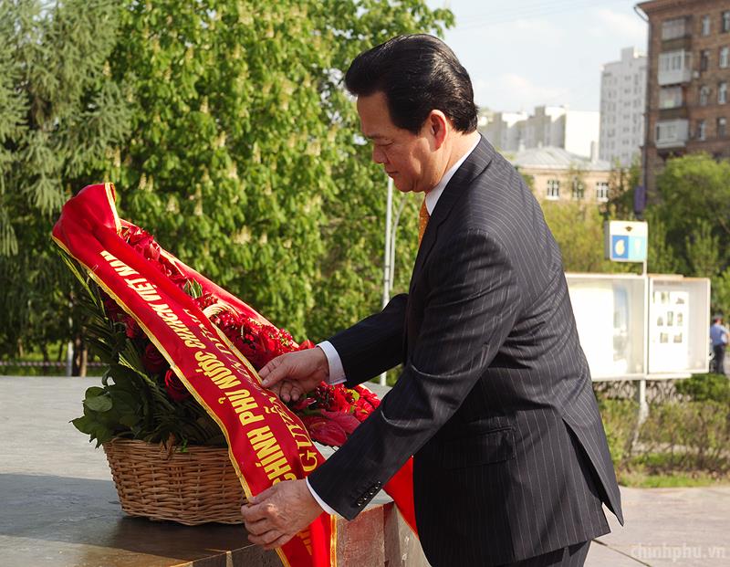 Thủ tướng Nguyễn Tấn Dũng đã tới dâng hoa tại Tượng đài Chủ tịch Hồ Chí Minh ở thủ đô Moscow, LB Nga.