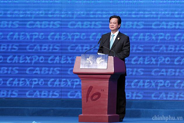 Thủ tướng Nguyễn Tấn Dũng phát biểu tại lễ khai mạc Hội chợ, Hội nghị thượng đỉnh Thương mại-Đầu tư ASEAN-Trung Quốc. Ảnh: VGP/Nhật Bắc