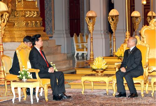 Thủ tướng Nguyễn Tấn Dũng tiếp kiến Quốc vương Campuchia Norodom Sihamoni. Ảnh: VGP/Nhật Bắc