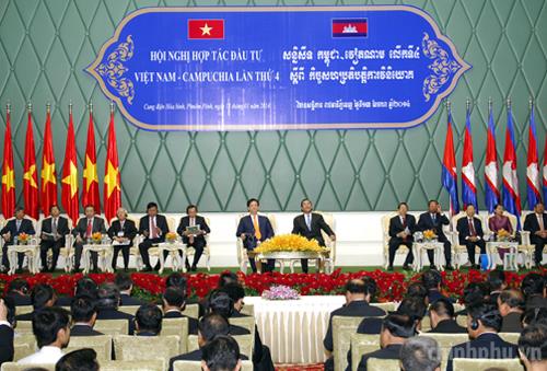 Thủ tướng Nguyễn Tấn Dũng và Thủ tướng Hun Sen đồng chủ trì Hội nghị Hợp tác đầu tư Việt Nam-Campuchia lần thứ 4. Ảnh: VGP/Nhật Bắc