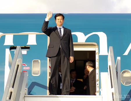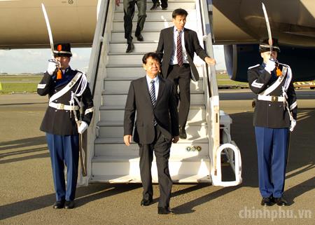 Chiều 23/3 (giờ địa phương, Thủ tướng Nguyễn Tấn Dũng đến Hà Lan dự Hội nghị Thượng đỉnh An ninh Hạt nhân lần thứ 3. Ảnh: VGP/Nhật Bắc