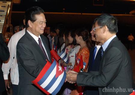 Tối 26/3 (giờ Việt Nam), Thủ tướng đã tới Thủ đô La Habana, bắt đầu chuyến thăm chính thức Cộng hòa Cuba từ ngày 26-27/3. Đại diện Bộ Ngoại giao Cuba đã đón Thủ tướng tại Sân bay Quốc tế Jose Marti. Ảnh VGP/Nhật Bắc