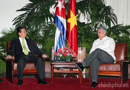 Thủ tướng Nguyễn Tấn Dũng đã có cuộc gặp làm việc với Phó Chủ tịch thứ nhất Hội đồng Nhà nước và Hội đồng Bộ trưởng Cuba Miguel Diaz Canel Bermudez. Ảnh: VGP/Nhật Bắc