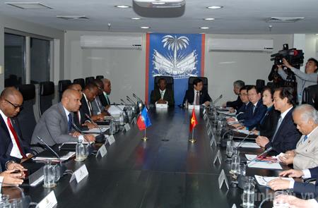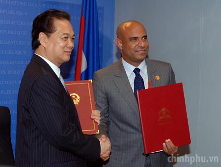Thủ tướng Nguyễn Tấn Dũng hội đàm với Thủ tướng Laurent Salvador Lamothe tại Văn phòng Thủ tướng Haiti. Ảnh: VGP/Nhật Bắc