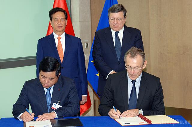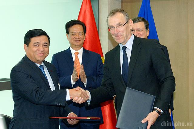 Thủ tướng Nguyễn Tấn Dũng và Chủ tịch EC Manual Barroso chứng kiến lễ ký chính thức khoản viện trợ trị giá 400 triệu Euro của EC dành cho Việt Nam giai đoạn 2014-2020. Ảnh: VGP/Nhật Bắc