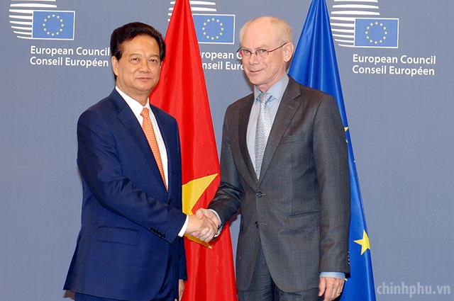 Thủ tướng Nguyễn Tấn Dũng và Chủ tịch Hội đồng châu Âu Herman Van Rompuy. Ảnh: VGP/Nhật Bắc