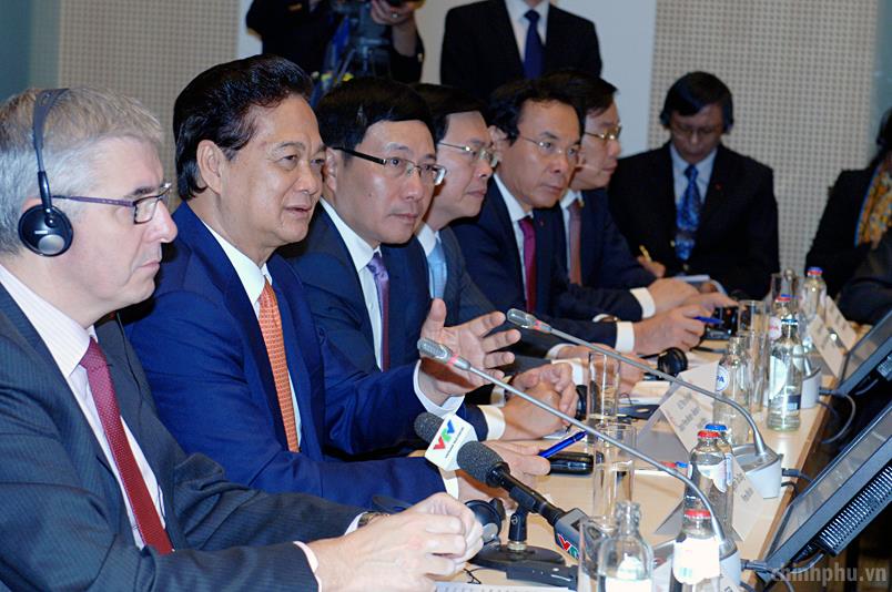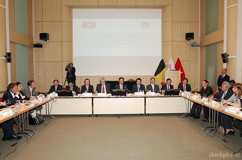 Chiều 13/10 (giờ địa phương), Thủ tướng Nguyễn Tấn Dũng đã có cuộc gặp và đối thoại với đại diện các doanh nghiệp hàng đầu của Bỉ và Việt Nam. Ảnh: VGP/Nhật Bắc