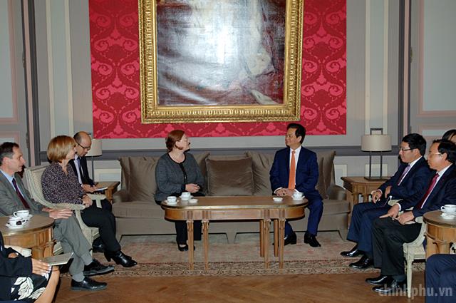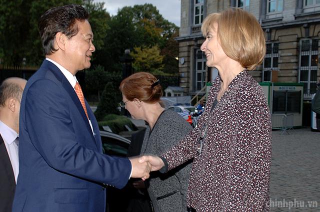 Thủ tướng Nguyễn Tấn Dũng và Phó Chủ tịch Hạ viện Bỉ, bà Françoise Schepmans. Ảnh: VGP/Nhật Bắc