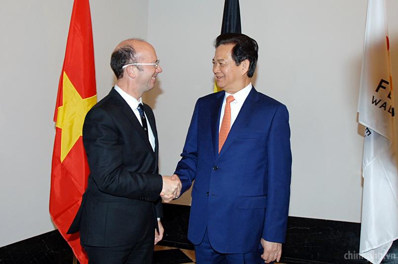 Thủ tướng Nguyễn Tấn Dũng và Thủ hiến cộng đồng người Việt nói tiếng Pháp, ông Rudy Demotte. Ảnh: VGP/Nhật Bắc